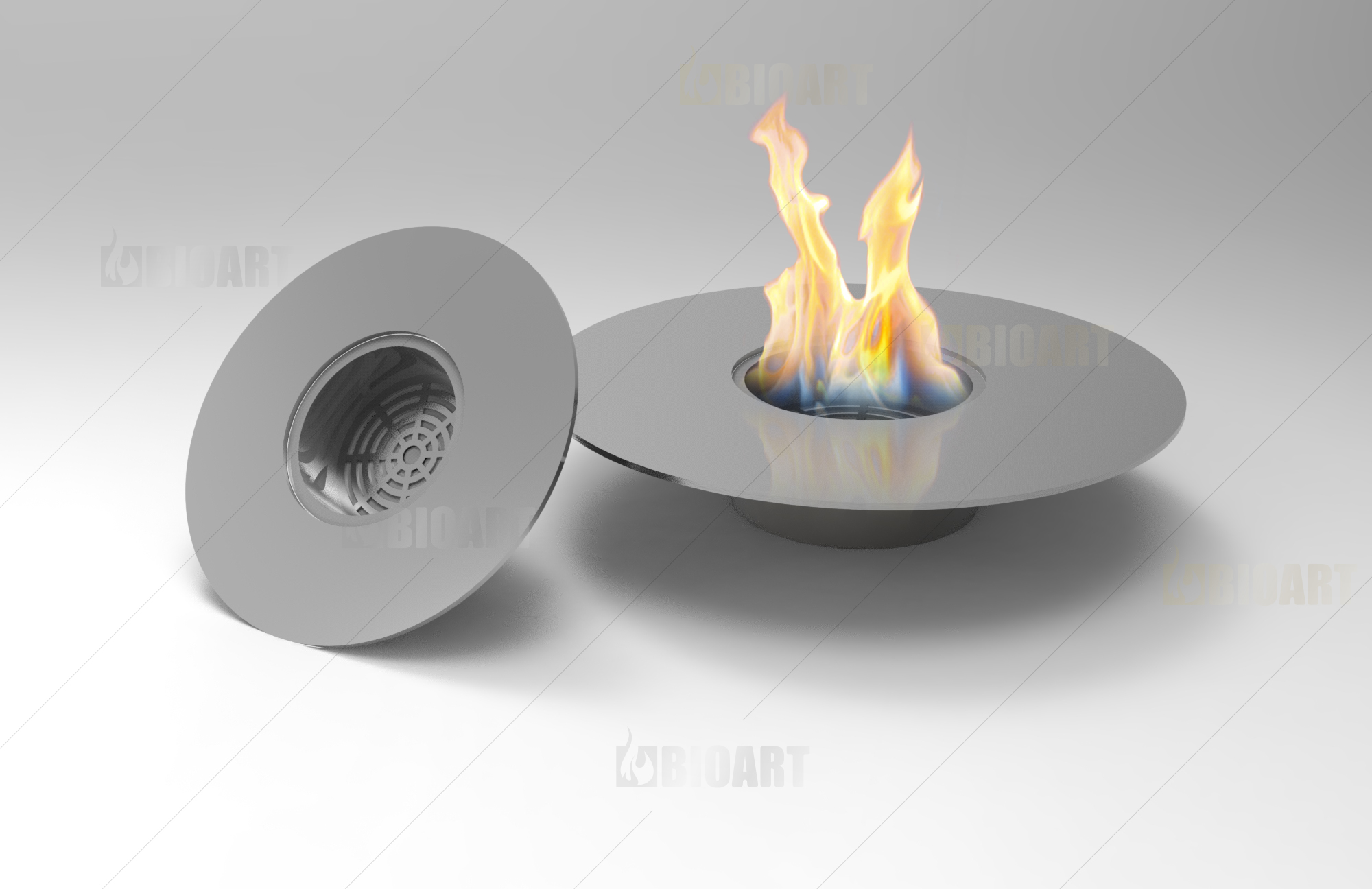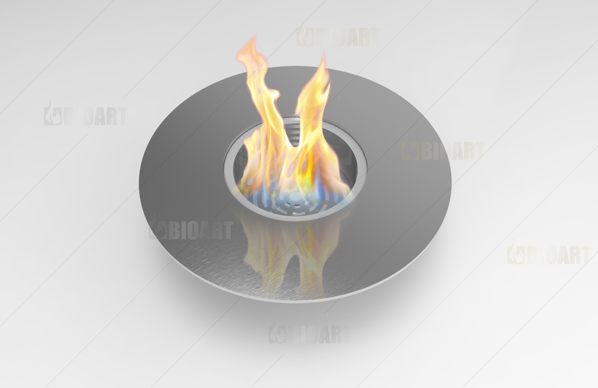 Круглая горелка Gefest от BIOART встраивается в поверхности из жаростойких материалов или жаростойкий корпус.