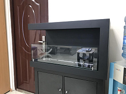 Никакого специального ухода за биокамином не требуется. Все части выполненные из нержавеющей стали протираются салфеткой и средством для ухода за нержавеющими сталями. Стекло протираются обычными средствами для ухода за стеклами.