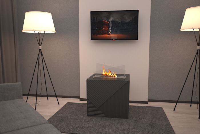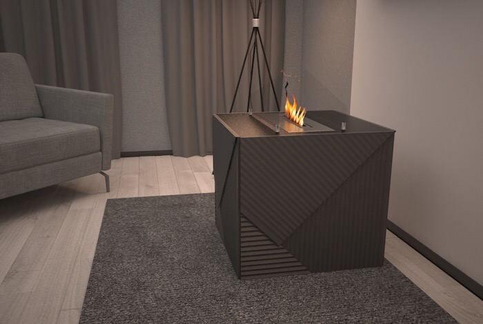 Биокамин Fields с ассиметричной отделкой – новое слово в стиле хайтек. Скошенные стекла повторяют стиль геометричных 3D панелей и подчеркивают их сложный рисунок. При изготовлении камина использованы закаленные стекла 4 мм по технологии OptiWhite. Такой биокамин отлично впишется в интерьер загородного дома или украсит гостиницу\ресторан в современном оформлении. Небольшие габариты дают возможность размещения Fields на специальной тумбе, также его можно поместить как приставной к стене или установить отдельно.