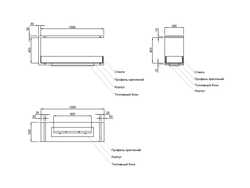 - Габаритные размеры ШxГxВ, (мм): 1000x300x400