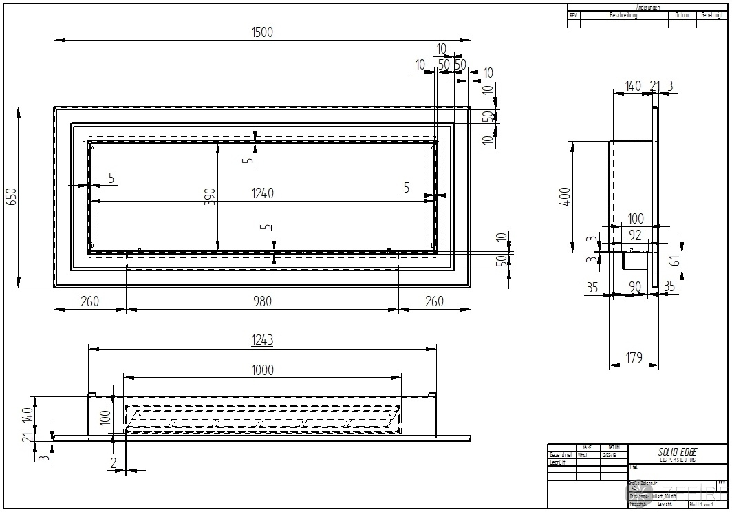 - Габаритные размеры ШxГxВ, (мм): 1500х176х650