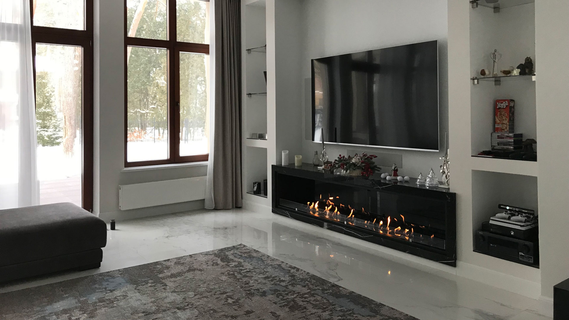 Автоматический биокамин GlammFire Glammbox 2800 EvoPlus - очень удобное решение для встраивания в нишу. Можно добавить любой портал или лаконичную контурную рамку.