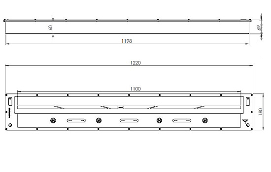 - Габаритные размеры ШxГxВ, (мм): 1220х180х69