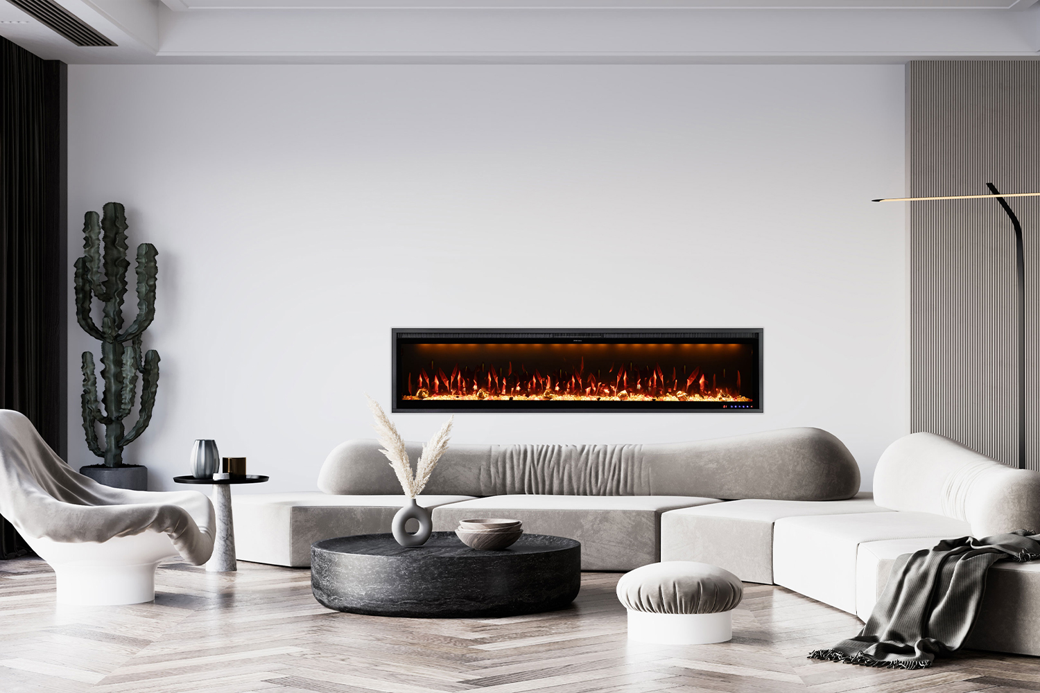 Очаг Mercury 74 LED RF из серии Mercury представляет собой стильное и функциональное дополнение для современных жилых и коммерческих помещений. Модель предназначена для встроенной и настенной установки, предлагая утонченный дизайн и яркое оформление топочной корзины, воссоздающее атмосферу классического дровяного камина.