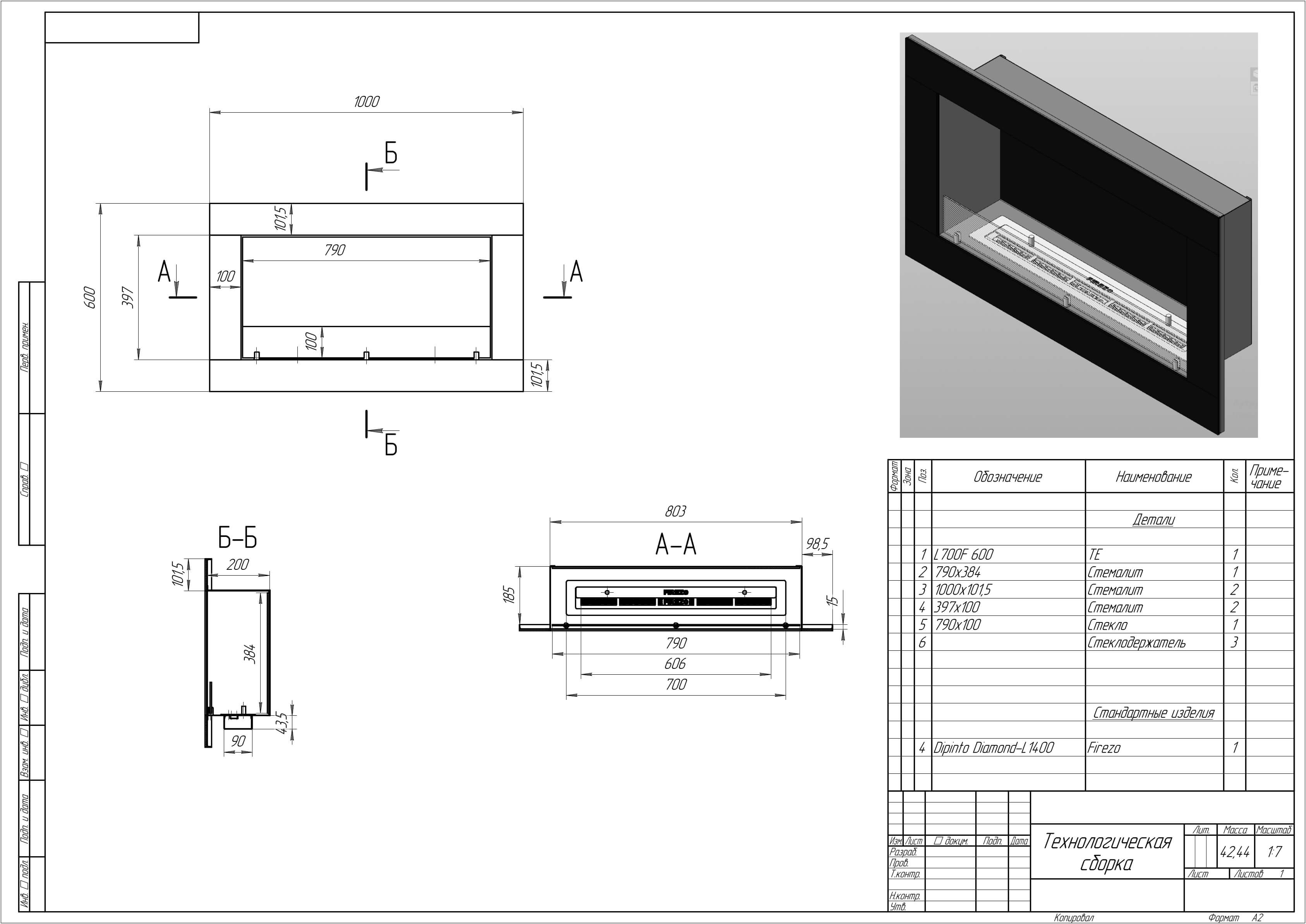 • Базовые размеры камина: 1000x200x600 мм