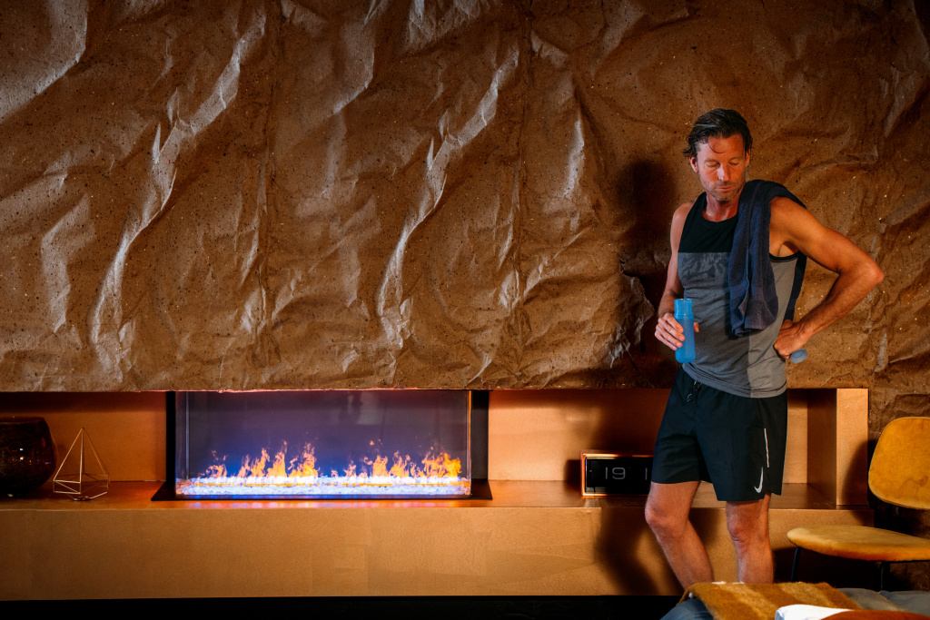 Камин подключается к водопроводу, благодаря чему нет нужды контролировать количество воды для его работы. Водопроводная вода очищается встроенными фильтрами, чтобы не образовывалась накипь и очаг радовал долгие годы.