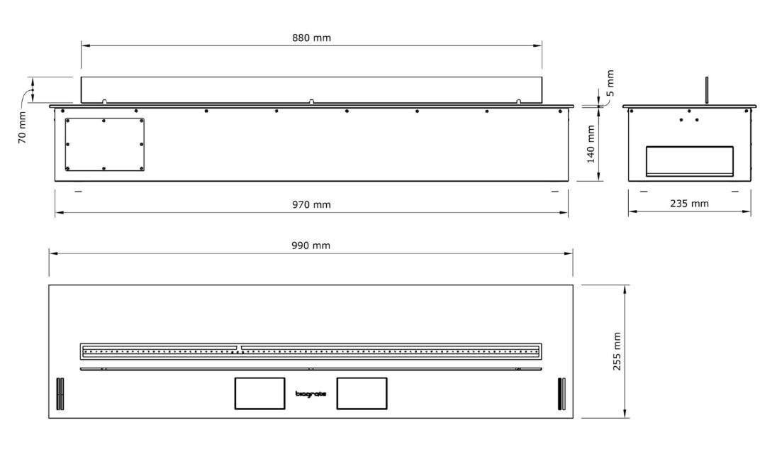 Прочие функции: блокируемая при работе и во время охлаждения крышка бака, активная система охлаждения, возможность включать и выключать биокамин с внешней кнопки («сухой контакт»), защитно-декоративное жаропрочное стекло Robax.