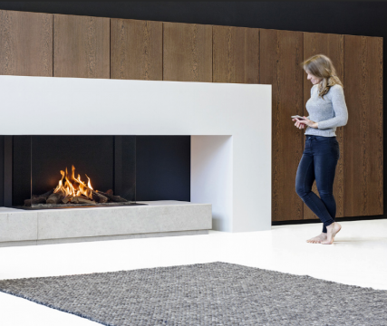 Современный трехсторонний газовый камин Faber Matrix 1050/650 III с широким видовым стеклом без рамки новым поколением объемной горелки Log burner. Декоративное оформление топки комплектом дров и хвороста. Закрытая топка. Требуется подключение к коаксиальному (труба в трубе) дымоходу.