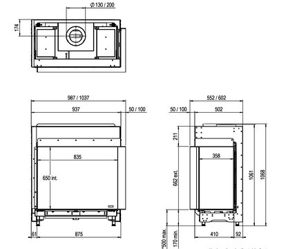 Современный угловой газовый камин Faber Matrix 800/650 II с прекрасным двусторонним видом огня. Поскольку камин оснащен двухсторонним стеклом, у вас есть несколько позиций с потрясающим видом на красивое пламя.