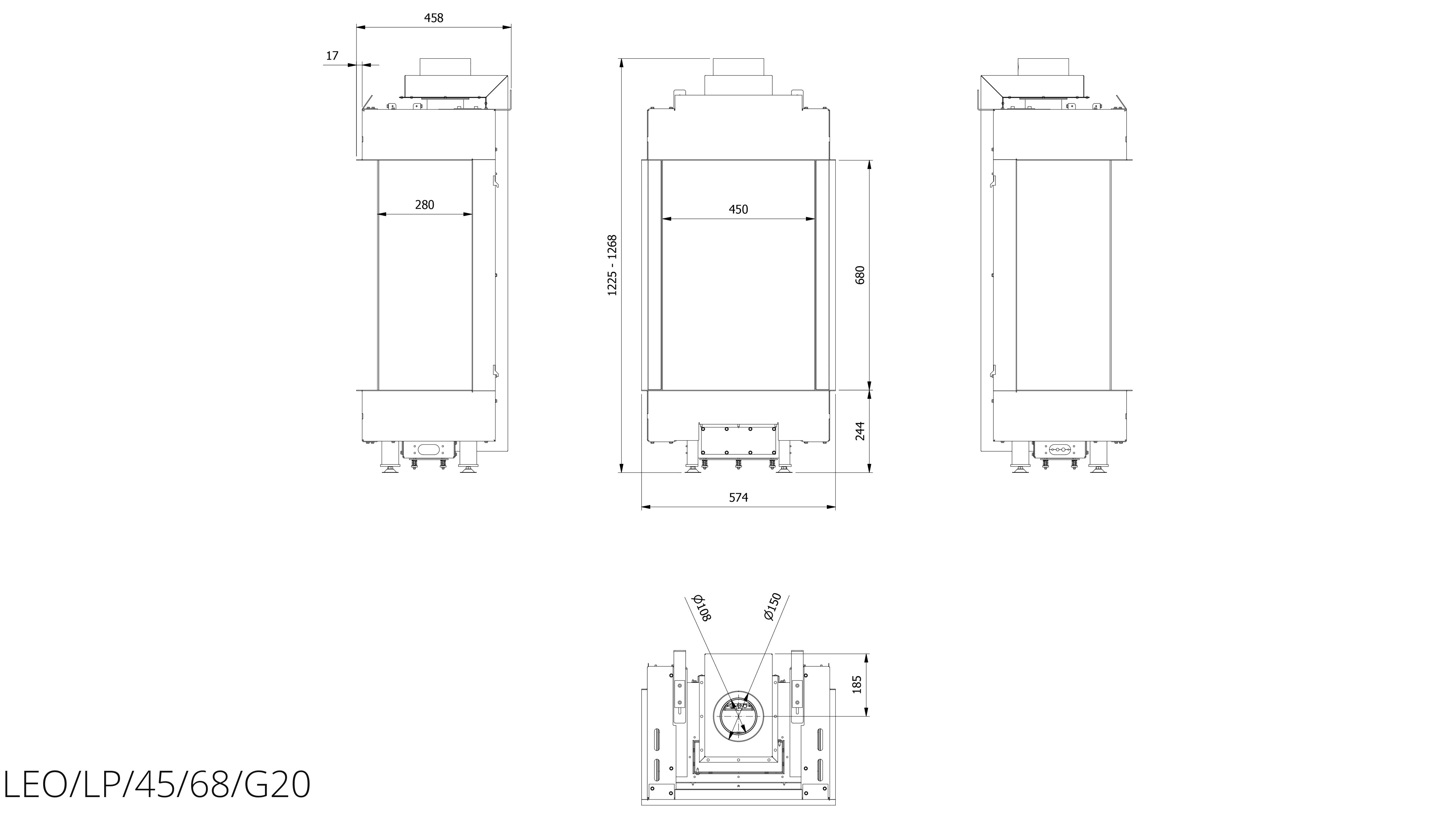 Газовый камин Kratki LEO/LP/45/68/G20 левая/правая магистральный газ