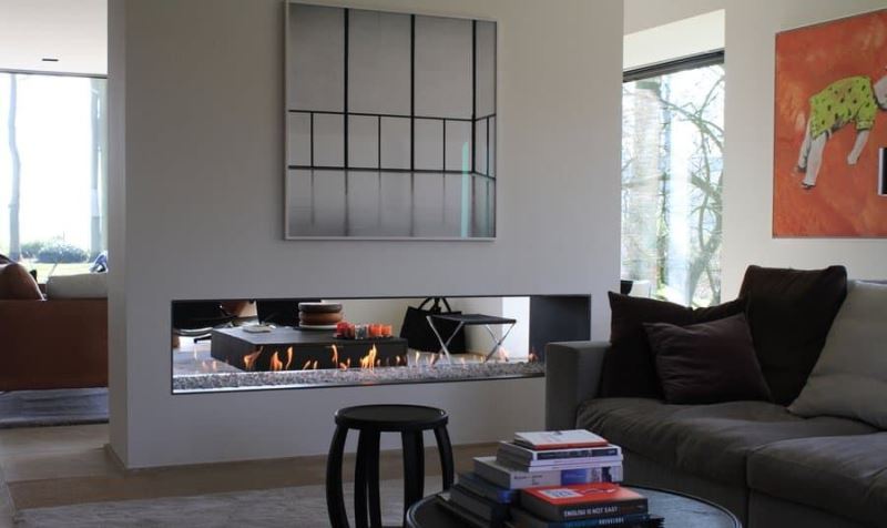 Газовый камин Vero Design Gala GA 6D – туннельная (сквозная) модель с горизонтальными окнами из стекла с двух противоположных сторон. Топка работает от природного газа бутан или баллонного газа пропан, что позволяет устанавливать камин не только в загородном доме, но и в городской квартире. Выражает актуальные на сегодняшний день веяния в создании интерьеров в стиле хай-тек.