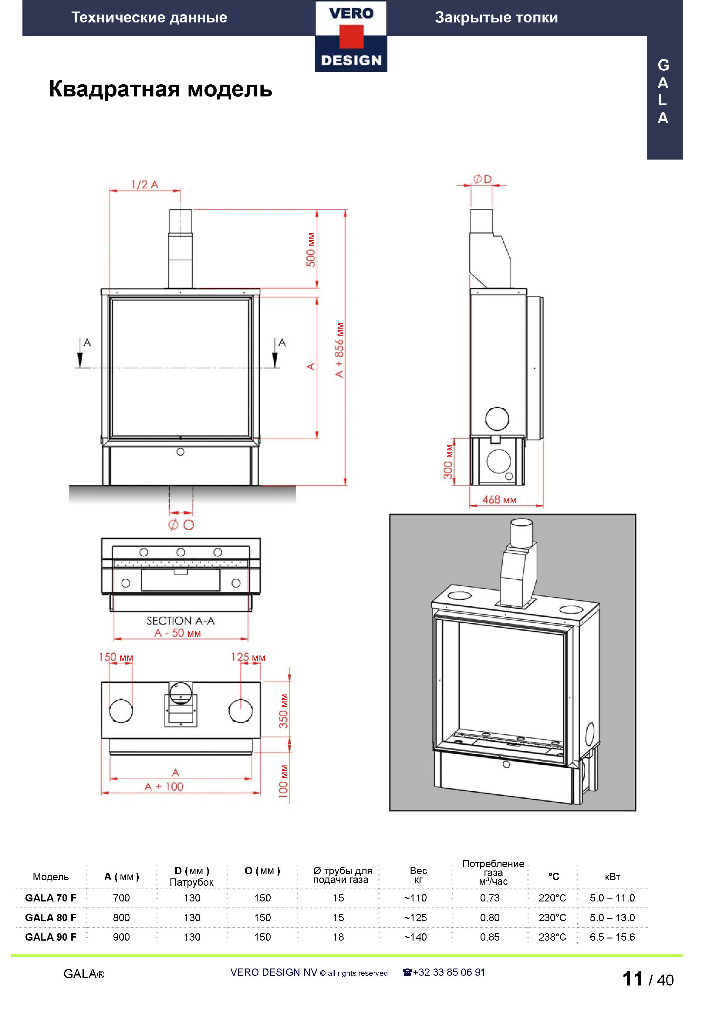 Газовый камин Vero Design Gala GA 80 F