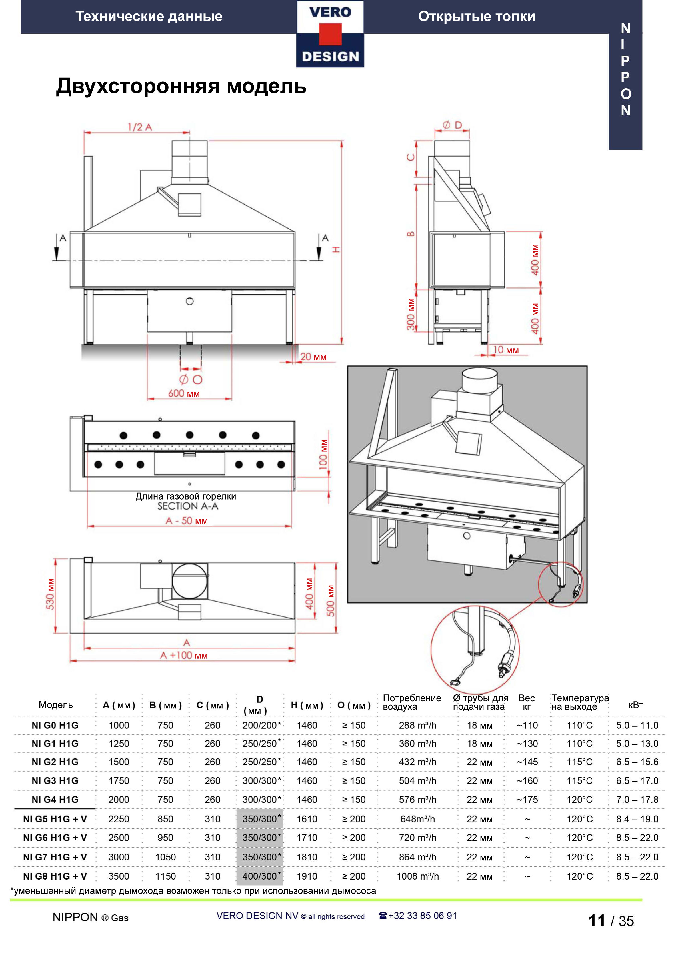 Газовый камин Vero Design Nippon NI G6 H1
