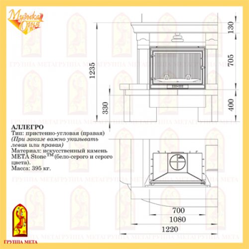 Каминная облицовка Мета Музыка Огня Аллегро правая/левая