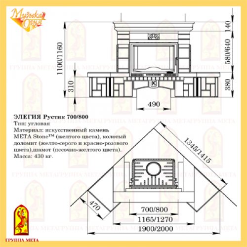 Каминная облицовка Мета Музыка Огня Элегия рустик 700