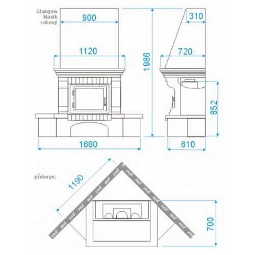 Камин ABX Glasgow Klasik (угловой) с облицовкой из песчаника оборудован закрытой топкой. Желающие посидеть "у костра", могут эксплуатировать камин с открытой топкой - открыв дверцу.
