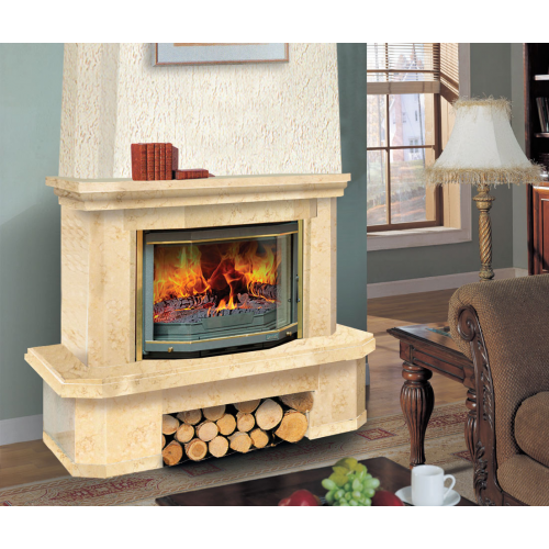 Каминная облицовка Bella Italia Bella полностью исполнена из полированного мрамора и выделяется своей цветовой аскетичностью, насыщая пространство мягким светом. Функциональность модели предусматривает использование чугунных топок со стеклом призматичной формы, при этом облицовка может оформляться деревянной или мраморной балкой. Текстура мрамора имеет размытый орнамент, стилизуя общую атмосферу под старину, что делает гостиную естественно грациозной и уютной.
