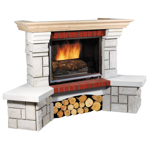 В оформлении грациозной каминной облицовки Bella Italia Stella задействованы два вида природного песчаника мягкого белоснежного оттенка. Классические очертания портала, ювелирно высеченного из колотого природного камня, гармонично сочетаются со шлифованной горизонтальной плитой и арочным обрамлением вместительного дровника. Естественность и непринужденность кантри-стиля выдержаны также в декоративной деревянной балке, успешно исполняющей роль каминной полки. Контрастные клинкерные кирпичики, обрамляющие верхнюю и нижнюю грани топки, довершают дизайн портала, насыщая игру живого огня дополнительной гаммой оттенков.