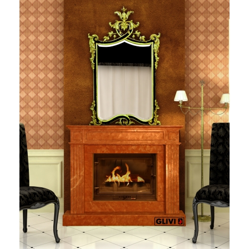 - Камин выполнен из состаренного мрамора Rosa Perlino.