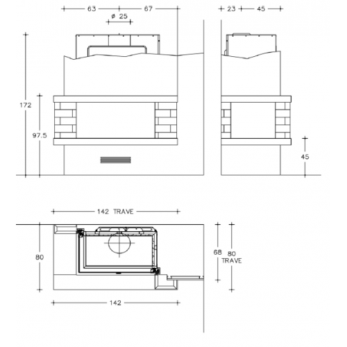 Широкий и стильный угловой камин в нижней и верхней части облицовки состоит из шлифованного мрамора Biancone. Боковые панели камина сделаны из камня Jack, а основание - из серого туфа под покраску. Камин оснащен вентиляционными отверстиями, которые могут быть закрытыми или открытыми, в зависимости от типа установки. Камин совместим с топкой ME 90/44 D/S.