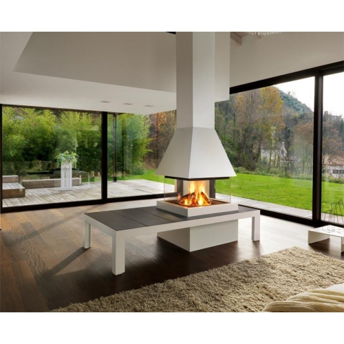 Камин оборудован эксклюзивным механизмом подъема-спуска переднего защитного стекла.