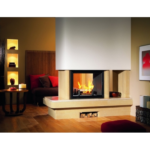- Двусторонний камин: идеально подходит для разделения комнат,