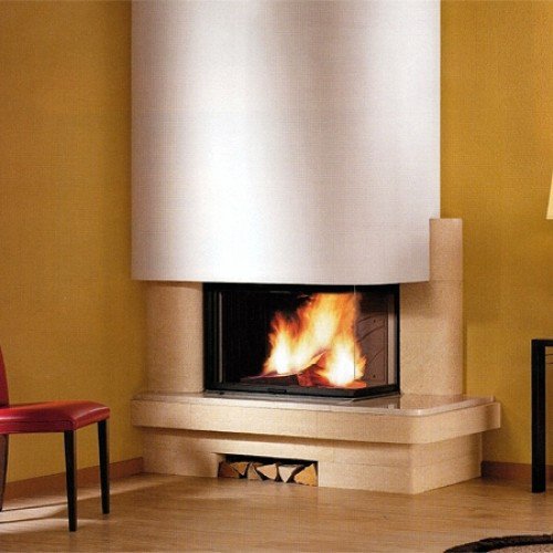 Угловой реверсивный камин из камня Dordogne.