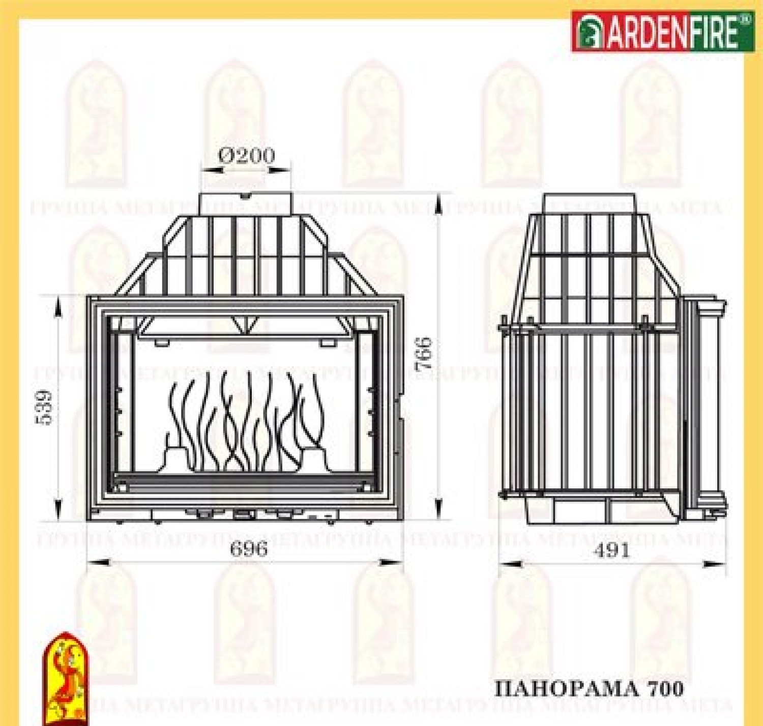 Каминная топка Мета панорама 700