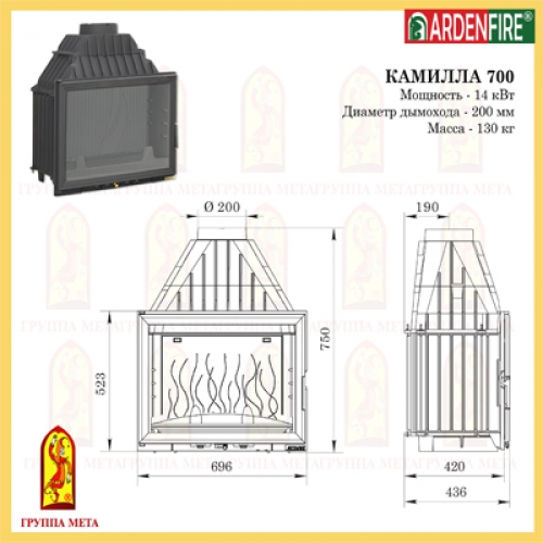 Группа МЕТА представляет каминные топки ARDENFIRE изготовленные из чугуна. Топки собираются на предприятии Группы МЕТА из комплектующих и деталей разработанных и произведённых во Франции. Для уплотнения разъёмных элементов топки используются термостойкий шнур. Все изделия ARDENFIRE укомплектованы специальными термостойкими стёклами (стеклокерамикой Neoceram N-O производства Японии).