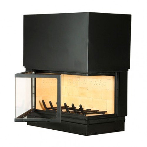 Угловая правая каминная топка со стеклом 16/9.