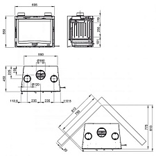 Камин, если он есть, безусловно, играет одну их важных ролей в вашем интерьере. Ведь именно на него и направляется постоянное центральное внимание в комнате. А каминная топка – это одна из составляющих камина. Обычно, их изготавливают из качественного чугуна, который обеспечивает надежность и удобство в эксплуатации на протяжении многих лет. Для придания красоты и эффектности чугун покрывают специальной термостойкой краской. Цвет краски необходимо подбирать в соответствии с интерьером помещения. В центре топки расположено огнеустойчивое стекло, которое служит одновременно и дверью, которая может открывать как вверх, так и вбок. Дверь предотвращает попадание разного мусора на пол или на ковер. Для этой цели в камин встроен дымосборник и ящик для золы. Их достаточно удобно чистить. А для чистки стекла встроена специальная система очищения при помощи сильного потока воздуха. Чертеж Invicta Гранд Визьон 700 контргруз Инструкция по монтажу и эксплуатации каминных топок INVICTA