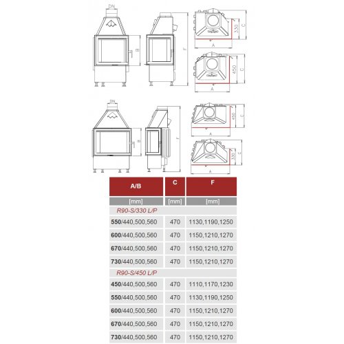 Каминная топка Kobok Corner 550 R90-S/450 L/P
