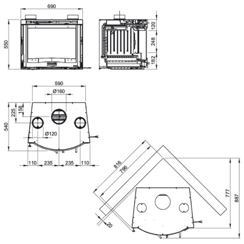 - ШхВхГ, мм.: 690x550x540