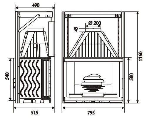 | Диаметр дымохода (мм) | 200 |