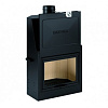 Топка имеет прямое стекло. Подъемная дверца с жаропрочным стеклом, что позволяет наслаждаться открытым огнем, которая открывается на петлях для чистки. Стальной кожух и внутреннее основание из чугуна обеспечивают прочность и долговечность. Имеет современный дизайн.