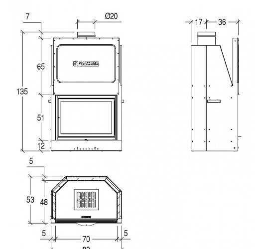 Каминная топка PIAZZETTA MА 260 SL произведена в Италии.