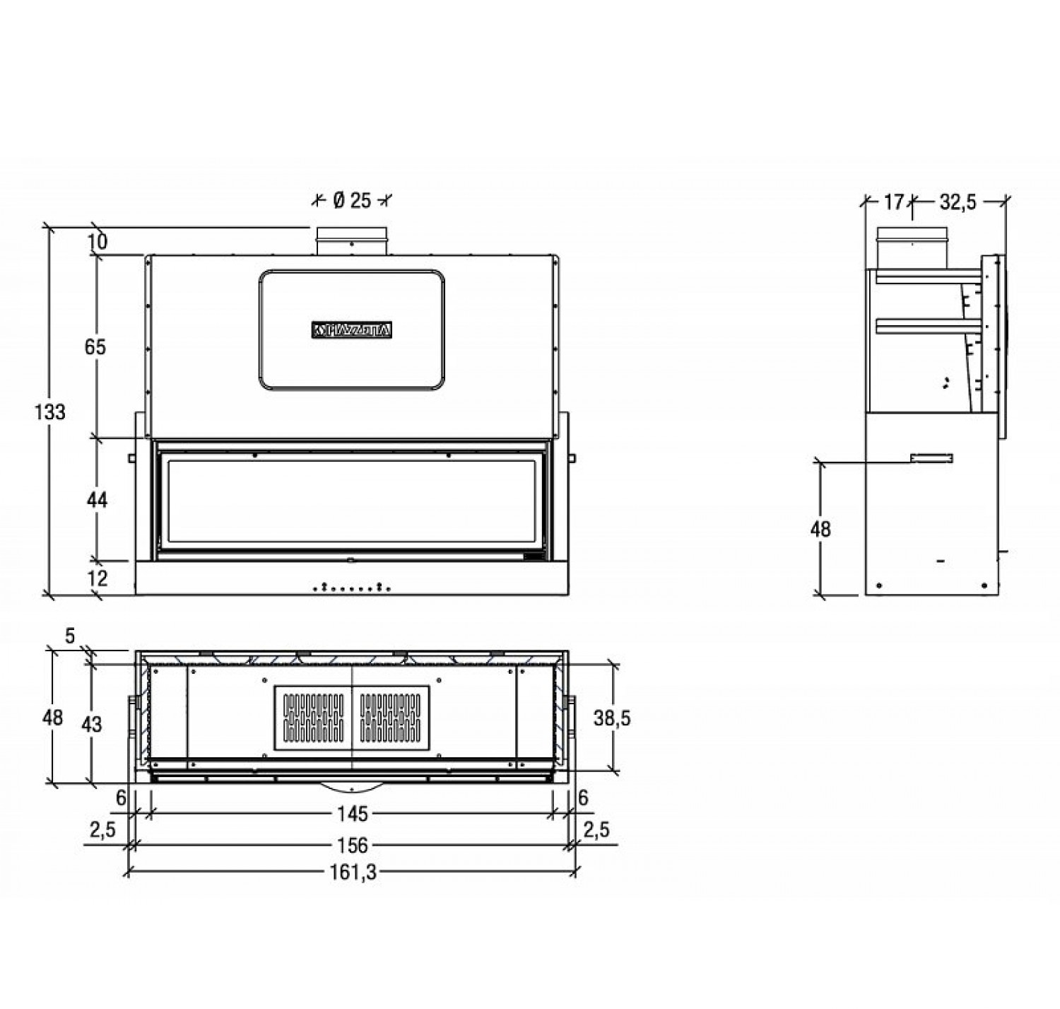 Каминная топка PIAZZETTA MА 265 SL произведена в Италии.
