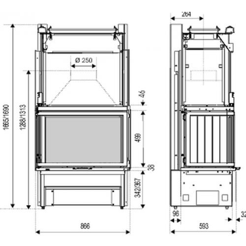 - Диаметр дымохода 250 мм