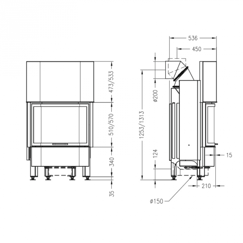 В топке имеется система длительного горения и система чистого стекла. Имеется возможность для подвода дополнительного воздуха из других помещений или улицы для процесса горения, что сводит к минимуму выжигание кислорода в помещении во время работы камина.