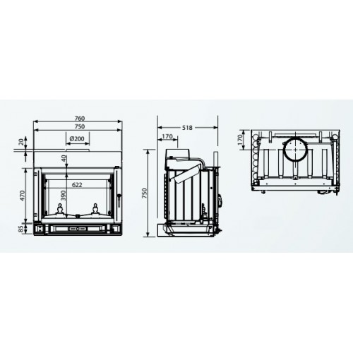- Чугунные детали снимаются изнутри топки: в случае замены нет необходимости демонтировать камин!
