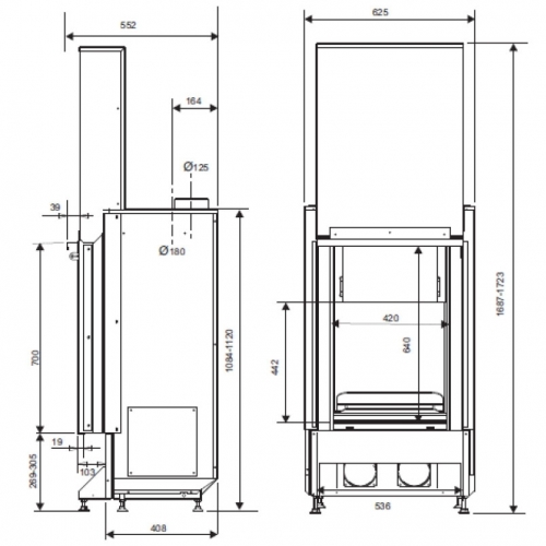 - Диаметр дымового патрубка, подключаемого к дымоходу, 180 мм