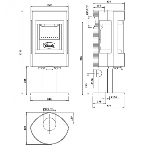 - Диаметр дымохода: 15 см