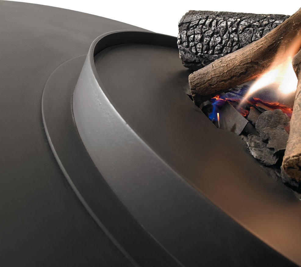 Центральный камин цилиндрической формы, с двойным корпусом. Цвет - черный.