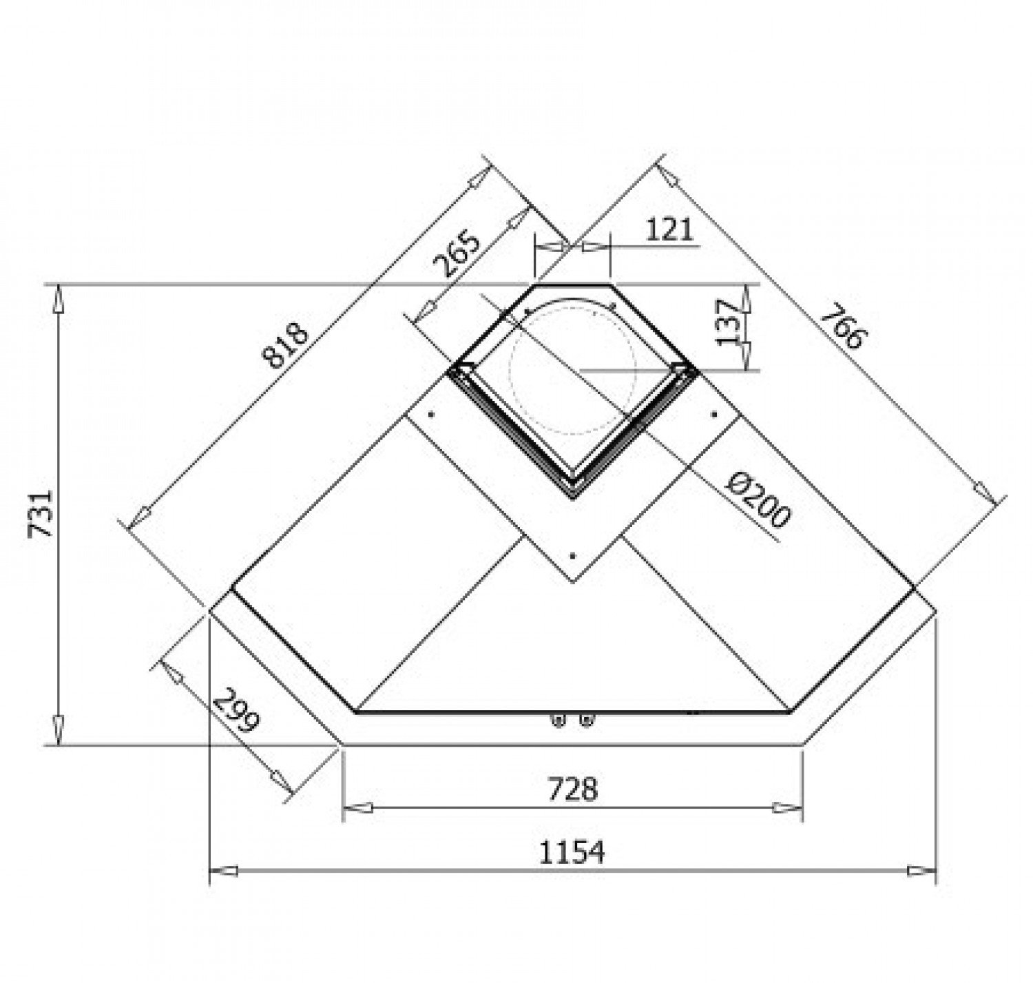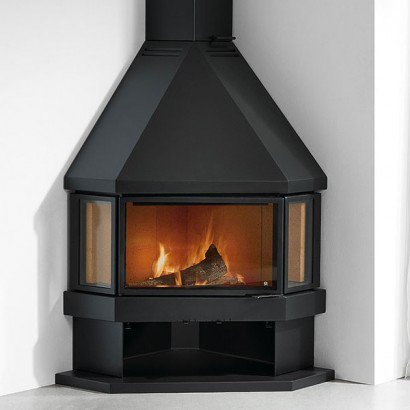 Угловой металлический камин. Дрова: 40 см.