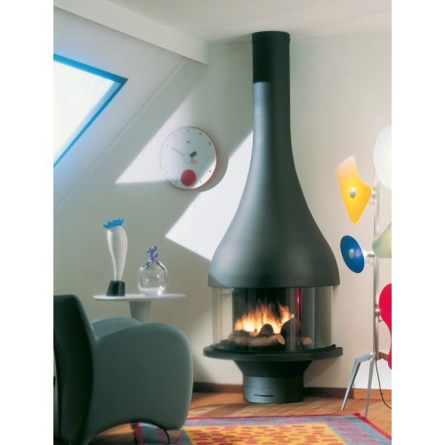 Камин Alexia 995 murale vitree имеет очень красивую и оригинальную форму облицовки, сделанной из стали. Конусообразная конструкция расширяется в пространстве очага. Очаг широкого плана закрыт стеклом, стеклянные дверки открываются легко и никогда не нагреваются от пламени. Многосторонний открытый очаг предоставит вам восхитительный обзор пламени с разных точек комнаты, в которой установлен камин. Закругленный стеклянный очаг также отлично можно будет наблюдать, если вы расположите ваш камин в центре комнаты. Массивный цоколь убережет пространство пола от значительного перегрева.