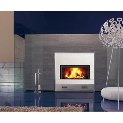 Облицовка из полированного камня Zen, нижняя часть и вставки из необработанной нержавеющей стали.  На фото представлена модель с дровяной топкой ME 90/44.  Высокотехнологичный камин от производителей итальянской компании Piazzetta, это настоящая находка для тех, кто любит инновации, тем, для кого важно четкое следование новейшим методам и технологиям. Коллекция Cornici от мастеров Piazzetta не так давно появилась на современном рынке, но ее уже успели полюбить многие ценители. Коллекция Cornici наполнена моделями, как современного плана, с высокими технологиями и стилем хай-тек, так и с Облицовка ми традиционного плана. Все модели объединяет удивительная совместимость с любым интерьером, ввиду демократичности в цвете, а также современность и высокая функциональность топок.  Камин Portici – это модель из будущего». Она имеет стильный дизайн, в облицовке имеются холодные оттенки серого и голубого. Конструкция этого камина не займет места в пространстве вашего дома. Модель Portici является встроенной, у которой главные части – топка и дымоход находятся в стене. Это качественное условие позволяет выгодно освободить свободное пространство в доме, не занимая его массивным камином. А также это очень хорошо подходит для тех, кто не любит загромождать пространство дома, а предпочитает минималистический стиль хай-тек. Камин Portici сделан полностью из итальянского сорта мрамора серого оттенка. Отлично отполированный, этот мрамора с разной точки обзора может давать разное цветовое представление – отсвечивать серым, голубым, металлическим. Поэтому этот камин можно назвать «камином из будущего».  В обустройстве современного интерьера этот вариант – настоящая находка. Он изумительно подойдет для тех домов, где любят все по-настоящему современное и новое. Итальянские специалисты подумали о функциональности такого камина и добавили к нему топку закрытого плана, чтобы он являлся еще и ценным обогревательным прибором. Его мощность поражает – одной полноценной растопки достаточно, чтобы протопить все пространство дома. Драгоценное тепло не теряется за счет смешивание со свежим воздухом, тем самым полностью передается в пространство дома. Очаг закрыт стеклянной дверцей из огнеупорного призматического стекла. Через такую конструкцию станет приятно наблюдать за интересной игрой живого пламени в топке, причем это можно будет делать в самой близи, не боясь вылетающих искр, как это бывает в открытой топке. Техническая информация