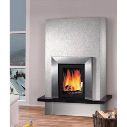 Простой прямоугольный корпус камина украшен черным гранитом и небольшой столешницей. Окно топочной дверцы — прямое и выполнено из стеклокерамики, с температурным порогом в 800 градусов Цельсия. Конвекционный короб — белого цвета. тепловая эффективность достигает 80%. Камин ABX Puris — хороший вариант для отопления загородного дома, дачи или городской квартиры. Особенно рекомендован для современных интерьеров.
