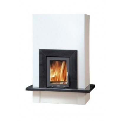 Простой прямоугольный корпус камина украшен черным гранитом и небольшой столешницей. Окно топочной дверцы — прямое и выполнено из стеклокерамики, с температурным порогом в 800 градусов Цельсия. Конвекционный короб — белого цвета. тепловая эффективность достигает 80%. Камин ABX Puris — хороший вариант для отопления загородного дома, дачи или городской квартиры. Особенно рекомендован для современных интерьеров.