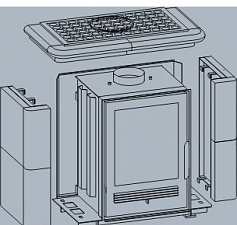 Вставка печи комбинированная из чугуна и стали. Кафельная облицовка выполнена в теплом цвете табак. За час печь в номинальном режиме расходует 2,5 кг сухих дров.