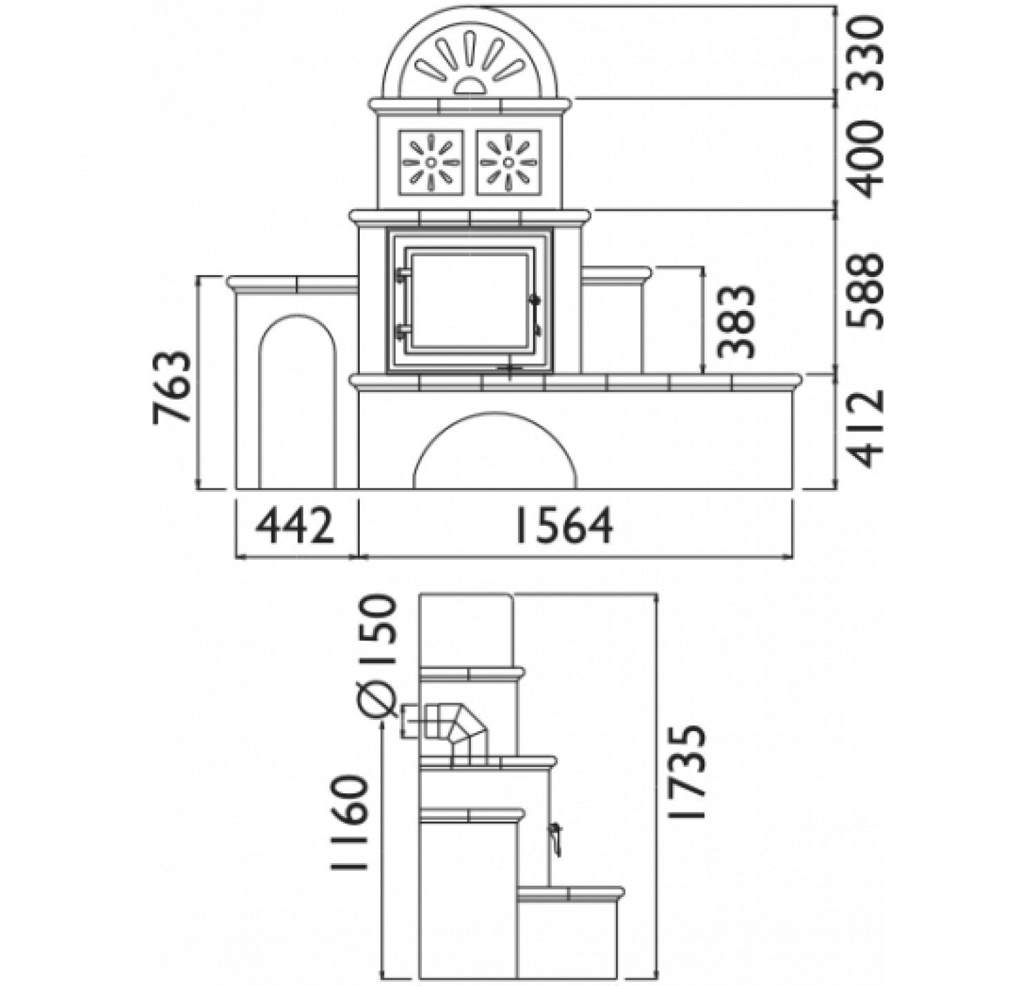 • Диаметр дымохода, (мм)